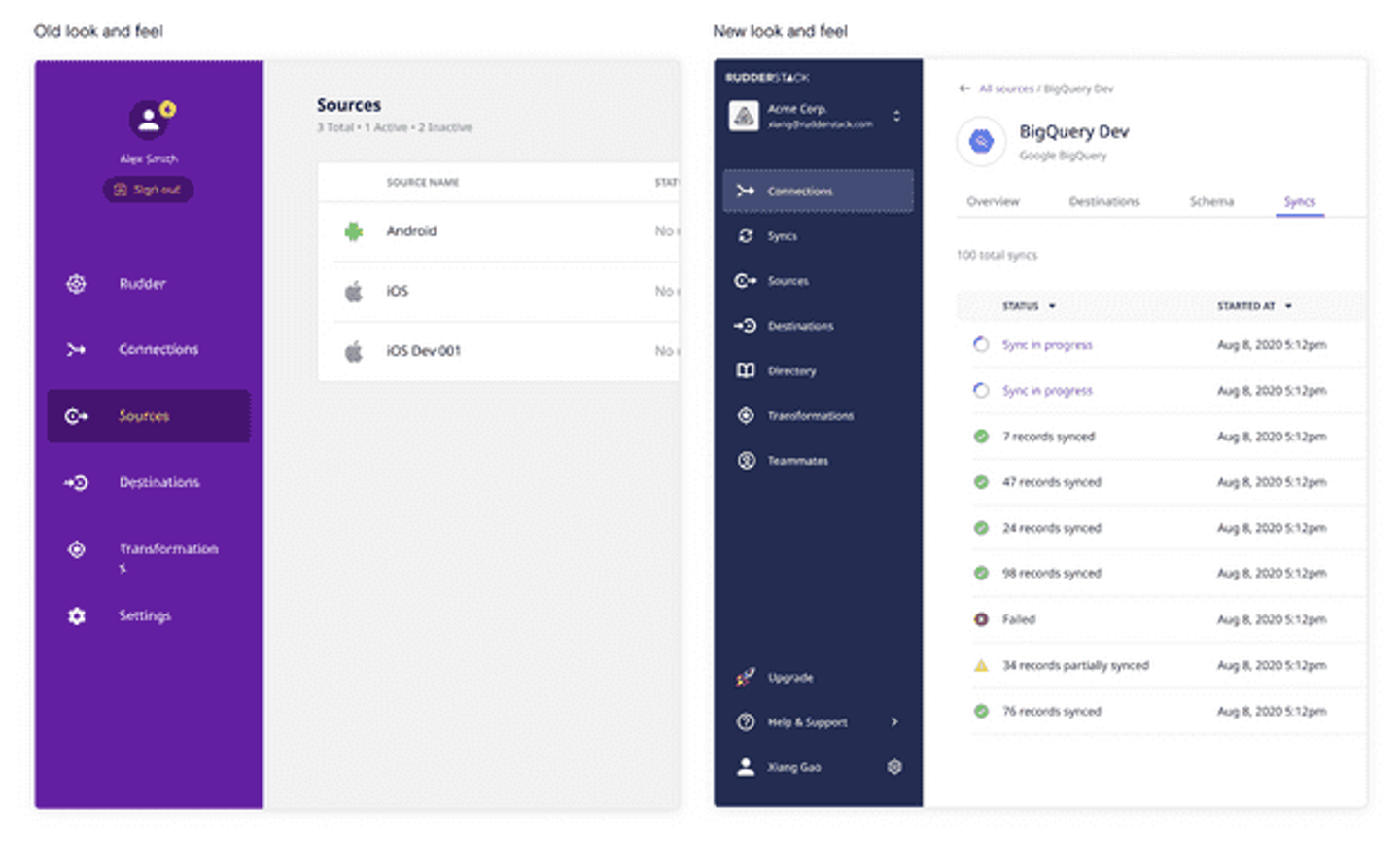 You’ll notice visual refinements such as tighter grouping, a new color scheme, and RudderStack branding in the navbar.