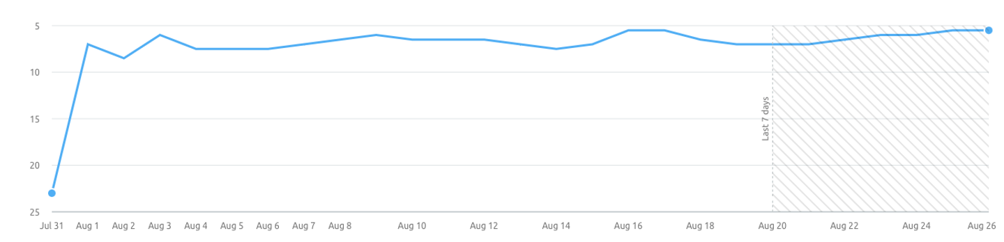 Change in page rank position since making Rudderstack the core of the experience