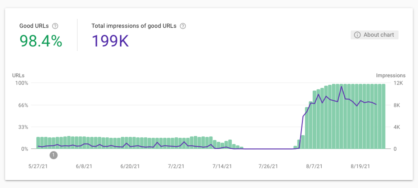 Change in Page experience score in Google Search Console