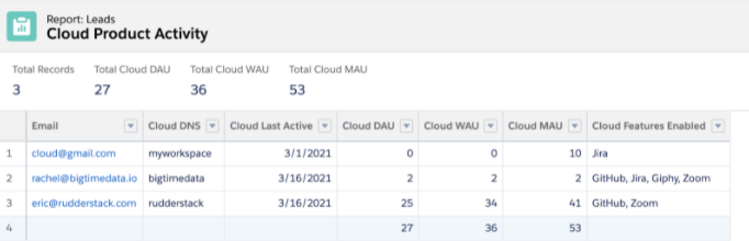 - DAU -> Lead.Cloud_DAU__c