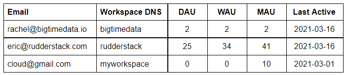 - Enrich and model data from Step 3a in your data warehouse to create a table at the cloud signup level that includes signup data and product utilization: